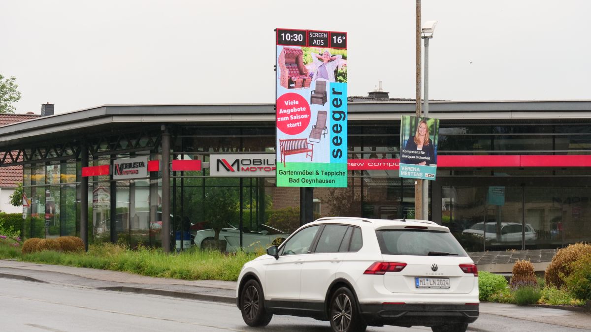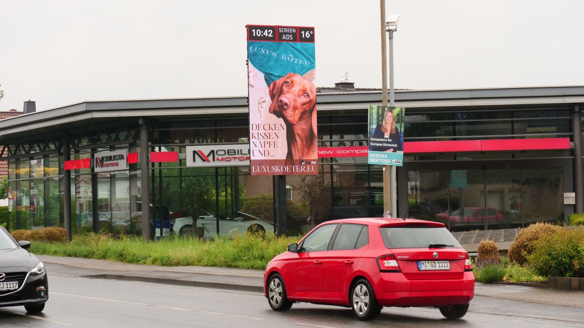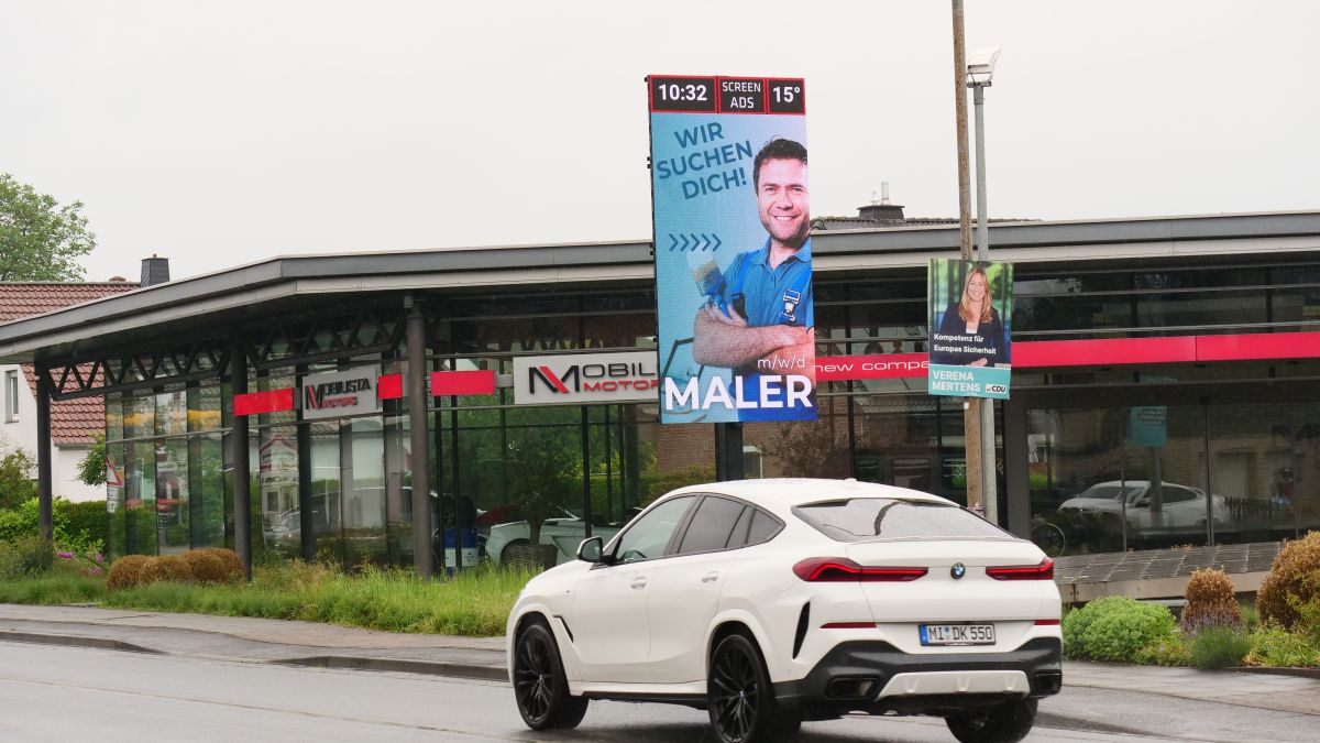 Gut sichtbar befindet sich der LED-Screen auf dem Gelände von Mobilista Motors. Die über 9.000 Sichtkontakte pro Tag machen diesen Standort zu einem idealen Platz für Werbebotschaften.